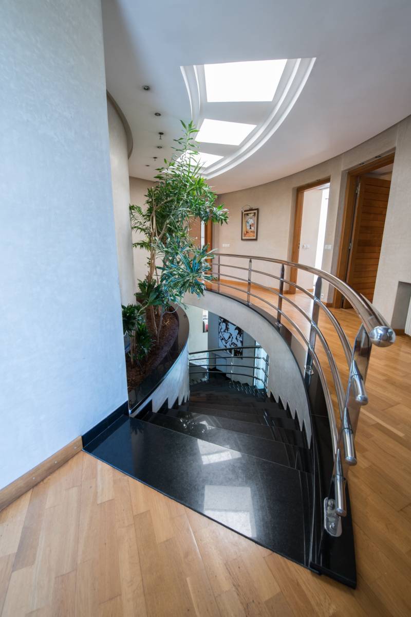 La réalisation de cet escalier dans cette magnifique demeure à Rabat est le fruit de notre savoir-faire et de notre passion pour le design intérieur. Le granite noir Zimbabwe, reconnu pour sa beauté intemporelle et sa durabilité exceptionnelle, confère à cet escalier une aura de grandeur et de raffinement.